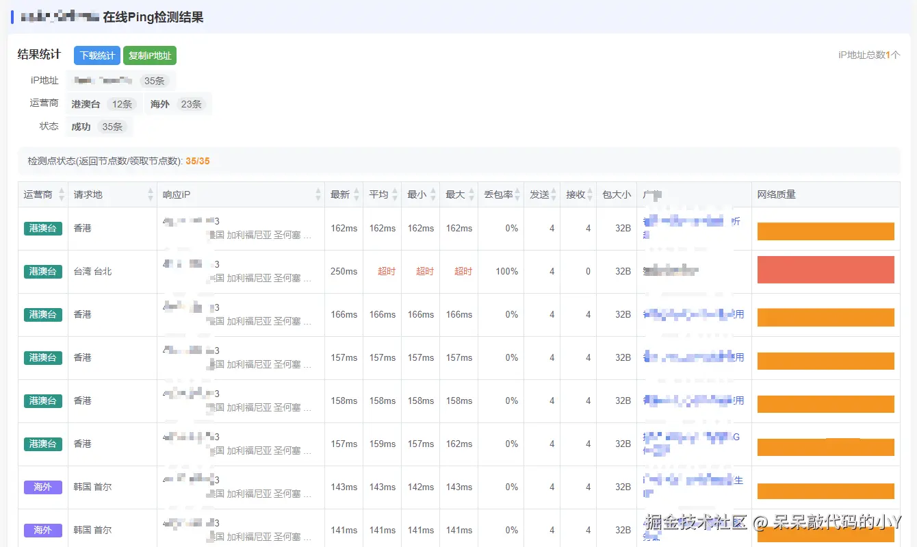 使用IP地址测试工具,测试从三家API提取的IP进行测试,可以看到IP地址都是海外IP,而且各家产品基本上都支持定向某个区域进行提取。