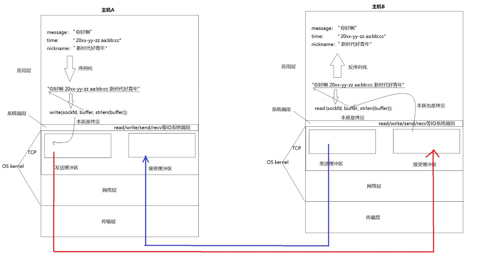在TCP协议中,我们可以使用read,write,recv,send来进行数据的发送和接收,我们在发送数据时,我们的操作并不是直接将数据发送到对方主机中,而是发送给TCP的发送缓冲区,而什么时候发送,发送多少数据,发送时出现错误怎么办,都由TCP协议来决定,接受时同理,这也就说明了TCP可以全双工的原因,也是为什么一个 tcp sockfd 读写都可以进行的原因