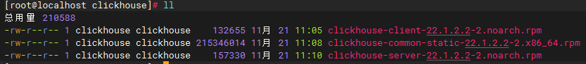 rpm -ivh /root/clickhouse/clickhouse-*.rpm