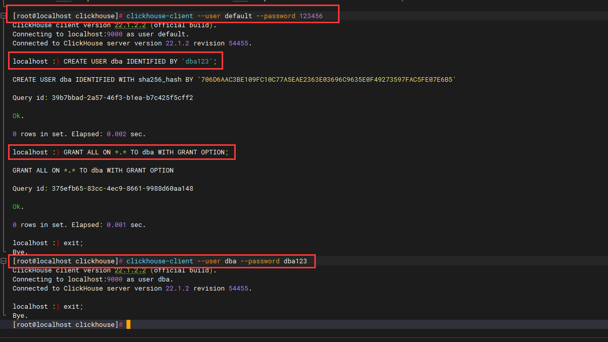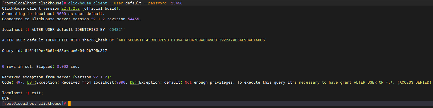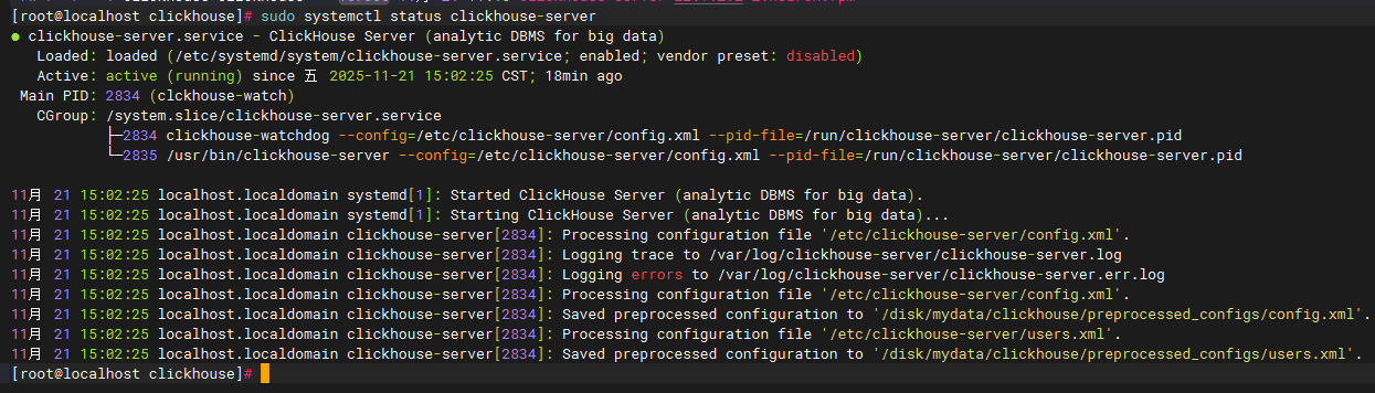 [root@localhost users.d]# sudo systemctl restart clickhouse-server