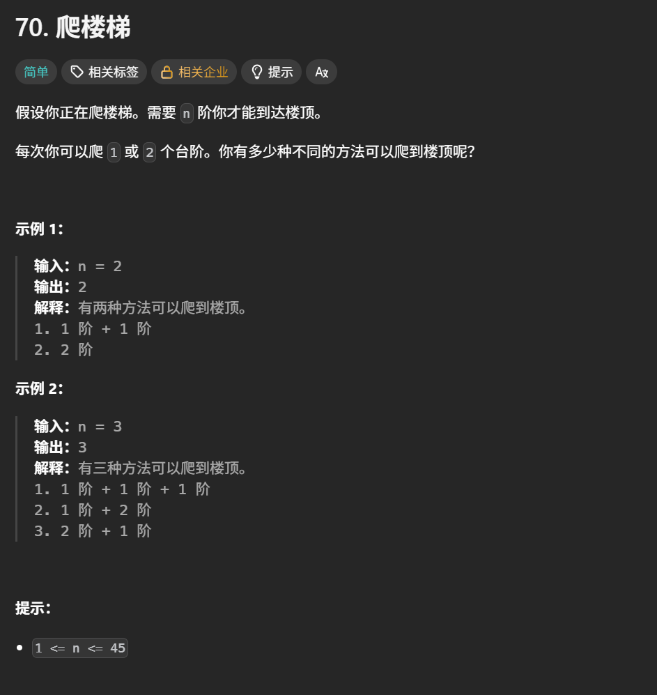 dp[i]的含义是,爬到第i层楼梯,有dp[i]种方法。