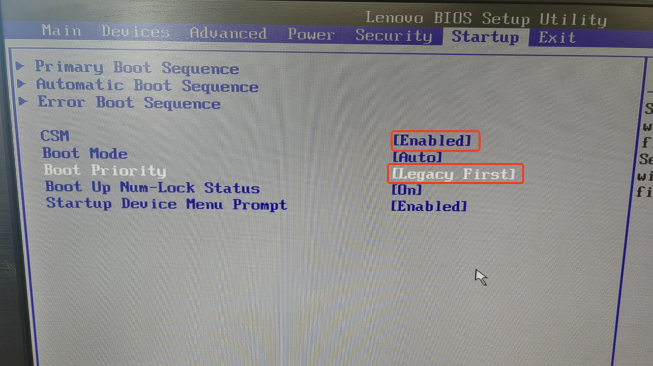 一般系统更换到windows7时需要在BIOS中将硬盘启动方式从UEFI改为Leagcy模式,我这里的设置位置也贴出来