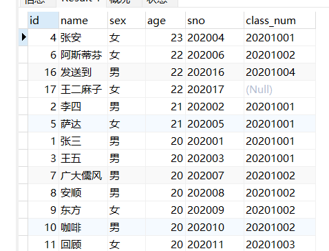 根据age字段从大到小排序--->倒序 desc