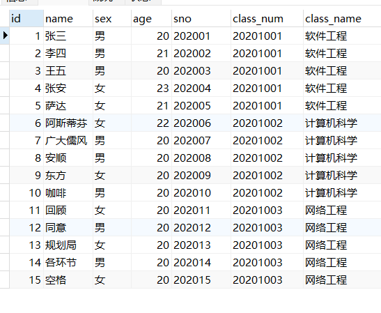 select * from student limit 10 , 5;#第三页
