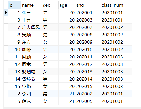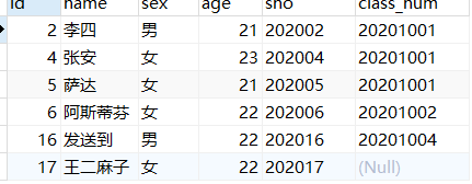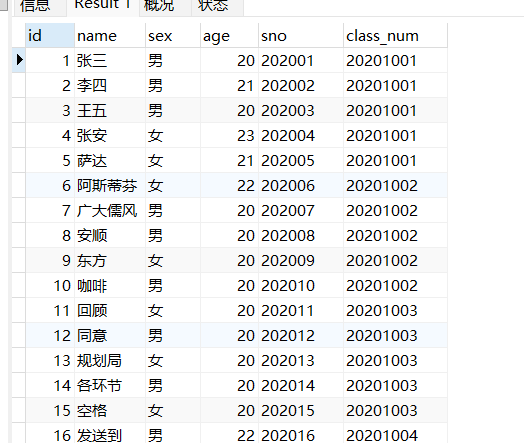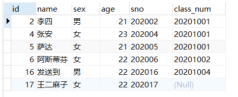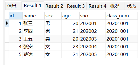 select * from student limit 0 , 5;#第一页