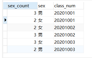 select count(*) sex_count,sex,class_num from student GROUP BY class_num,sex