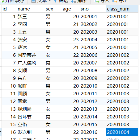 查询出学生中姓王的同学 选中运行!!!