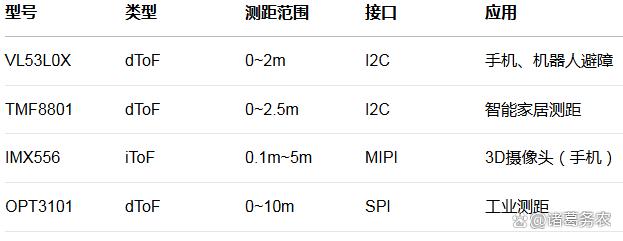 控制与处理电路:包括计时电路(如TDC)、调制解调器和计算单元,用于驱动光源、计算飞行时间/相位差,并最终输出深度信息。