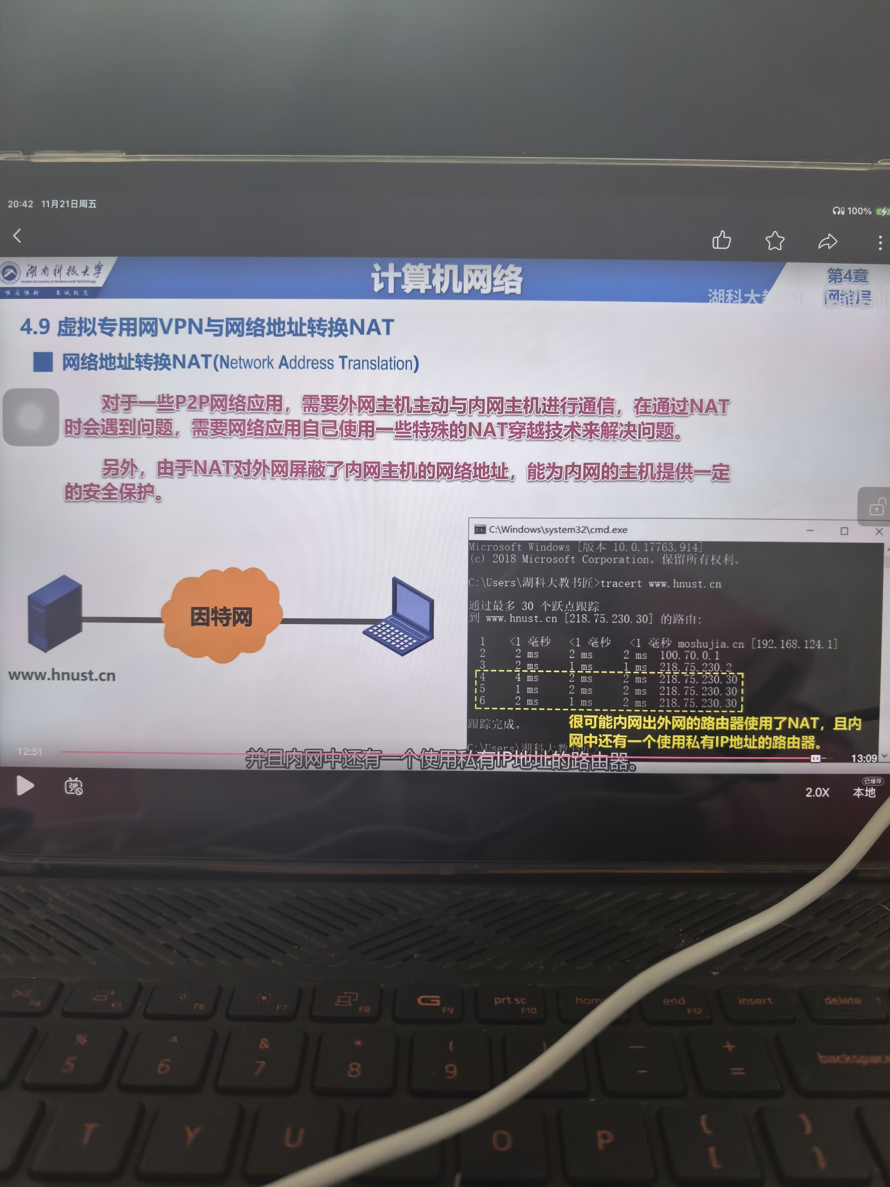 体现在 tracert 结果里,就是从内网出口之后的那几跳,都会显示这个被伪装后的公网地址,看起来是"三个相同"------本质是 NAT 把所有内网流量的源地址统一成了出口路由器的公网 IP,让公网里的路由只看到这个统一的地址,自然后续跳数的地址就会重复啦。