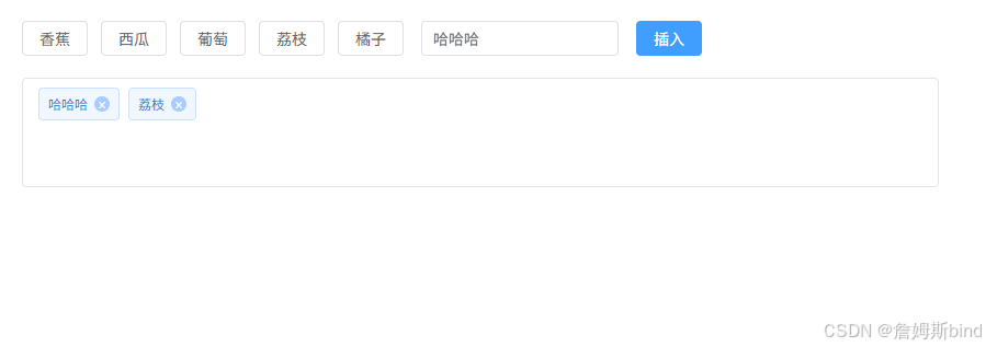 - 删除功能:支持点击标签内的"×"号删除,或通过Backspace 删除(代码中主要演示点击删除)。
