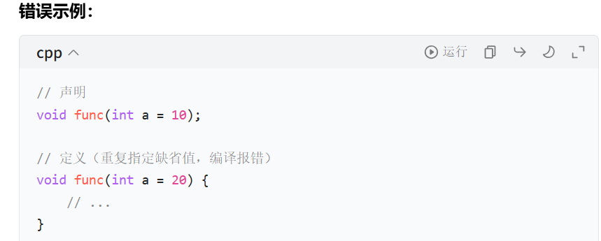此时编译器会提示 "重定义默认参数" 的错误。这一规则的核心是保证缺省参数的唯一性,避免歧义。