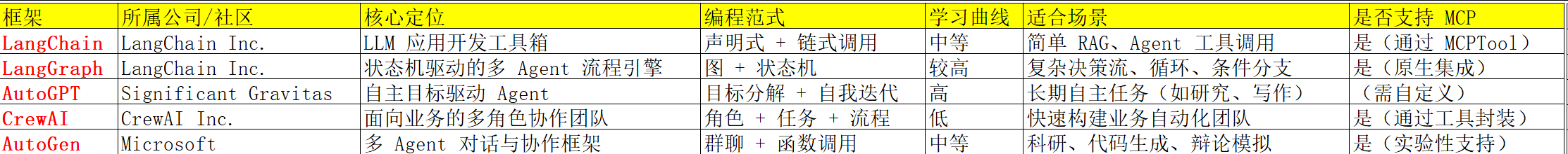 当前主流多智能体(Multi-Agent)与自主 AI 框架涵盖 LangChain / LangGraph / AutoGPT / CrewAI / AutoGen 五大框架。以下是总结和对比分析。