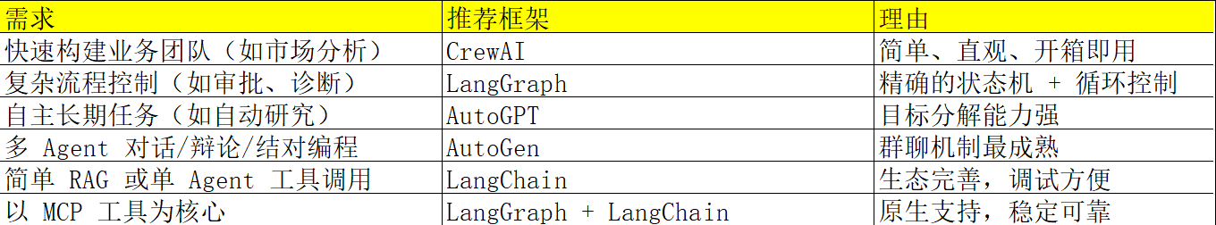 推荐:若以 MCP 为核心工具体系,优先选择 LangGraph 或 LangChain。
