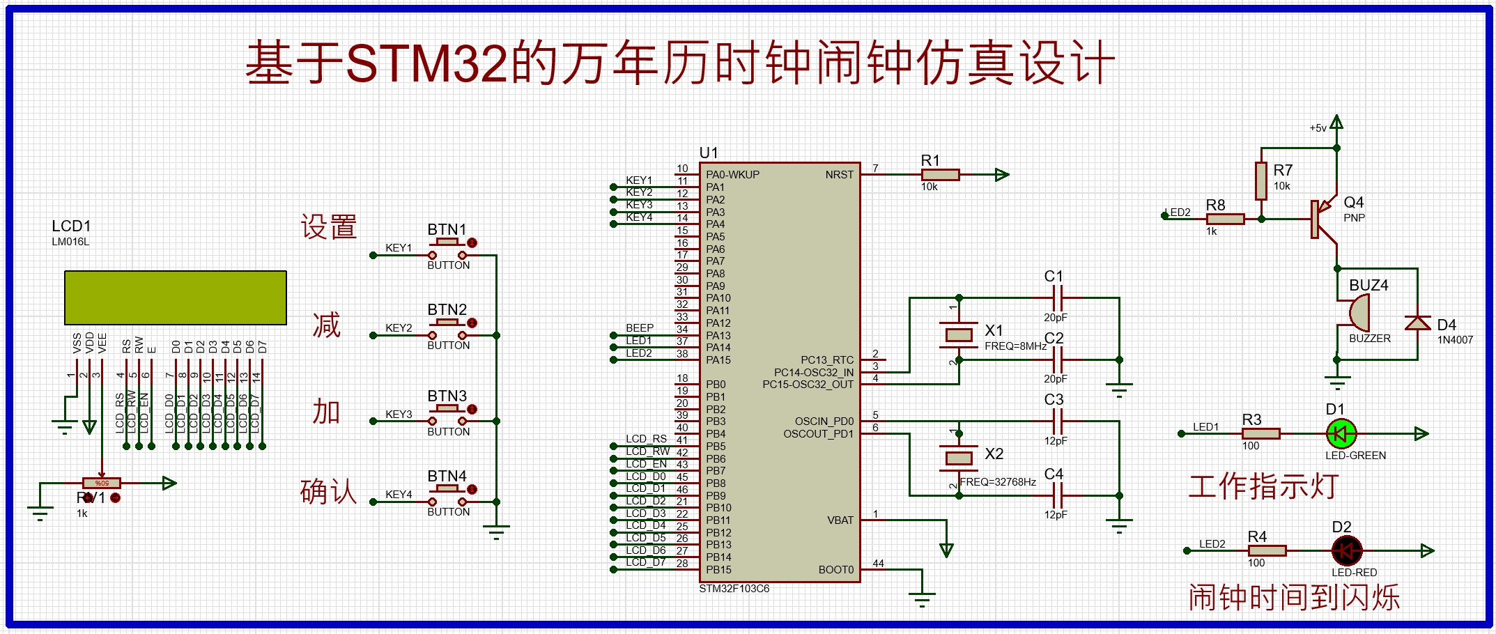 STM32电子钟万年历时钟闹钟LCD1602仿真设计