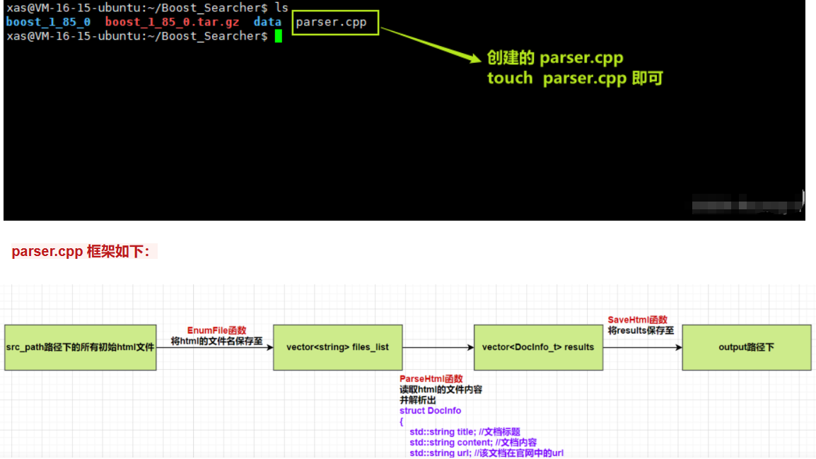 // 从 file_list 中进行解析,将解析出来的内容存放在 DocInfo 类型的 results 中