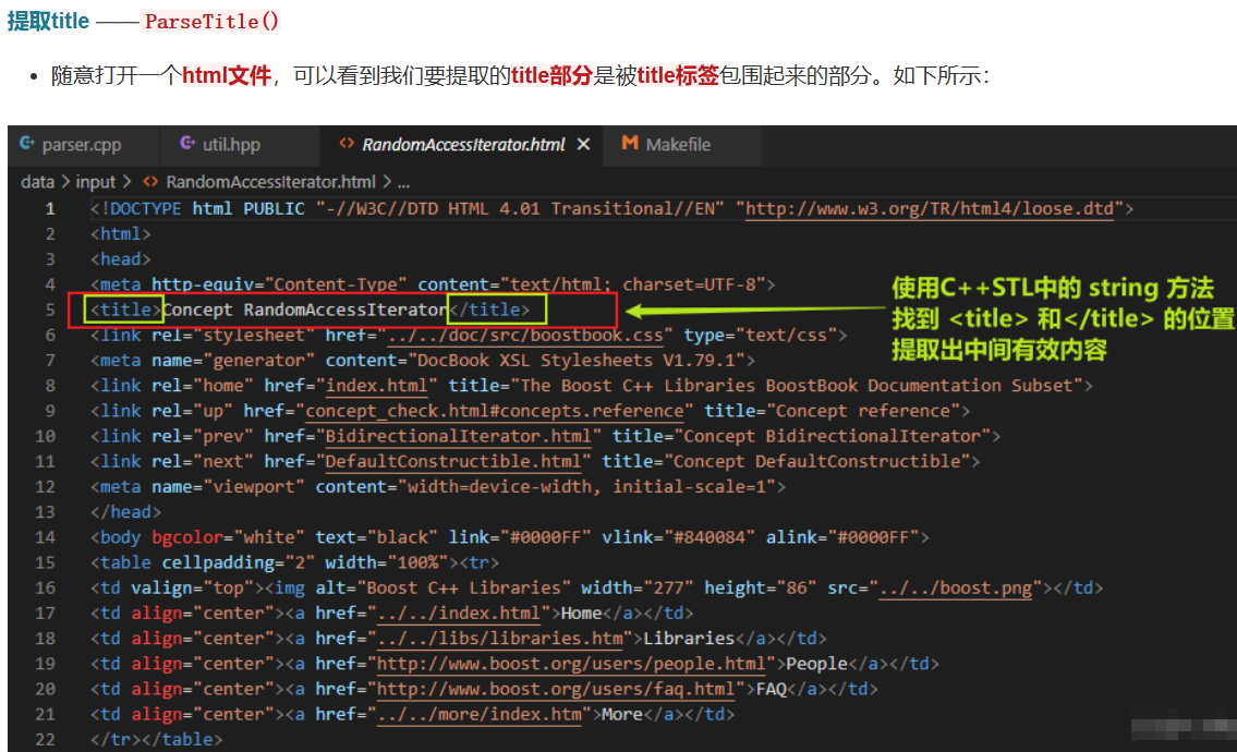 // 第二步:从 files_list 文件中读取每个.html的内容,并进行解析
