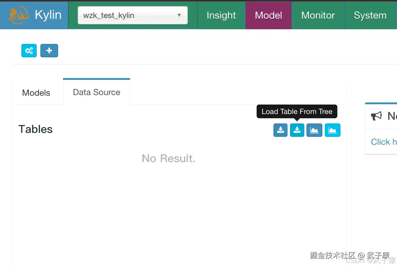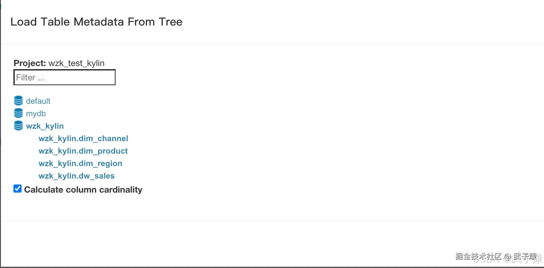 点击左侧的数据库:wzk_kylin,选择之后,展开了树: