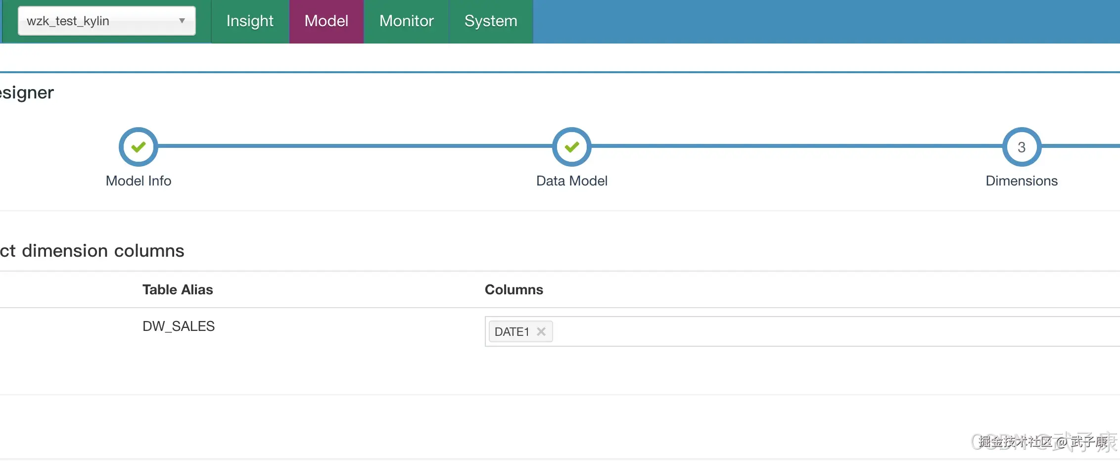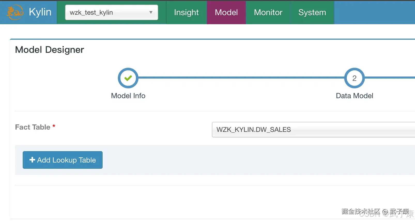 选择事实表,选择 WZK_KYLIN.DW_SALES: