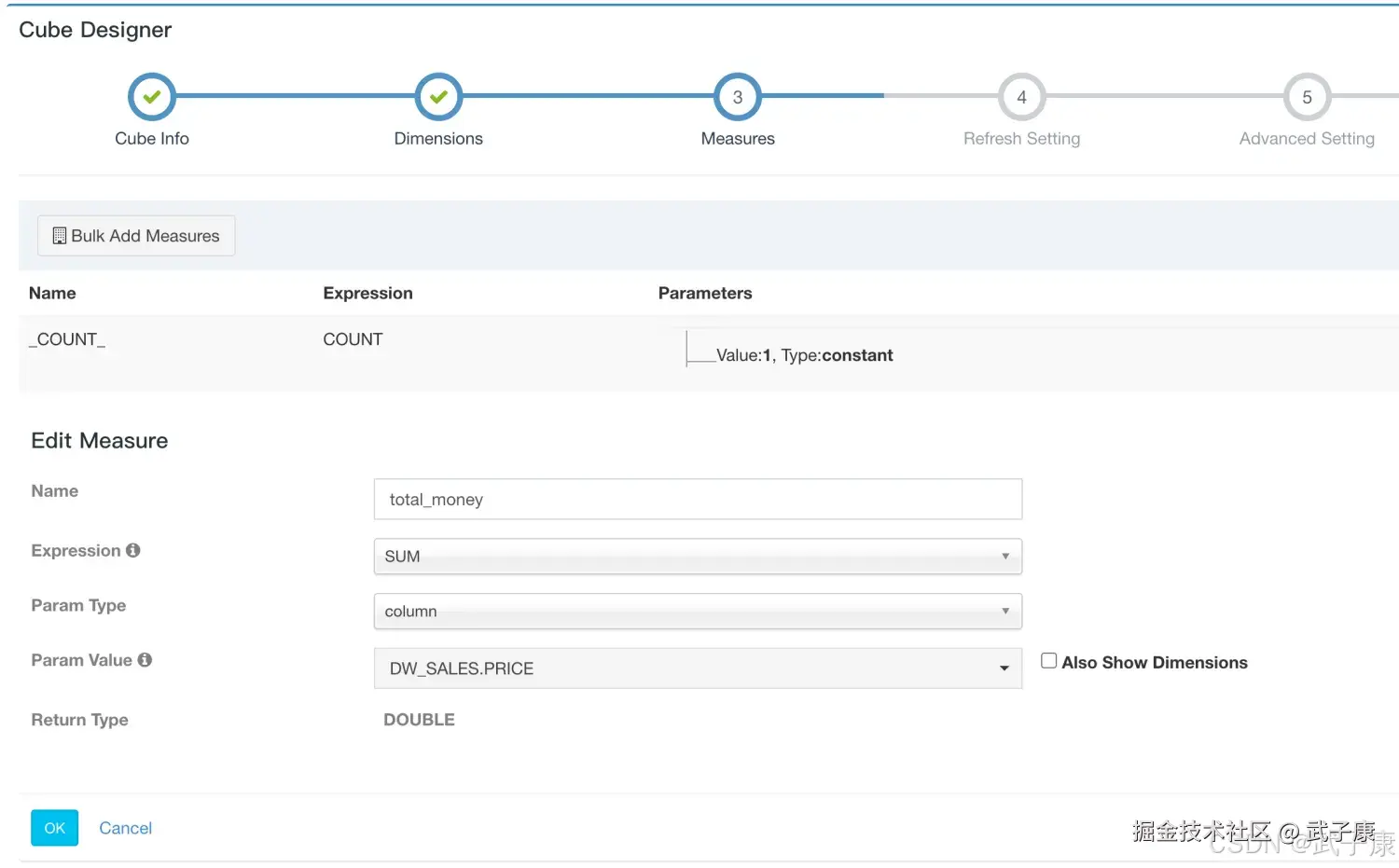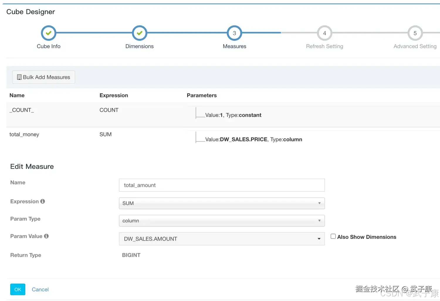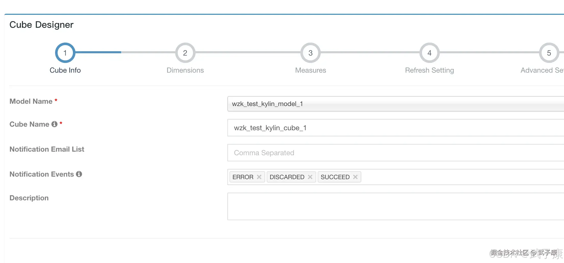 - 创建立方体(Cube),指定对哪个数据模型执行预处理,生成不同维度的数据