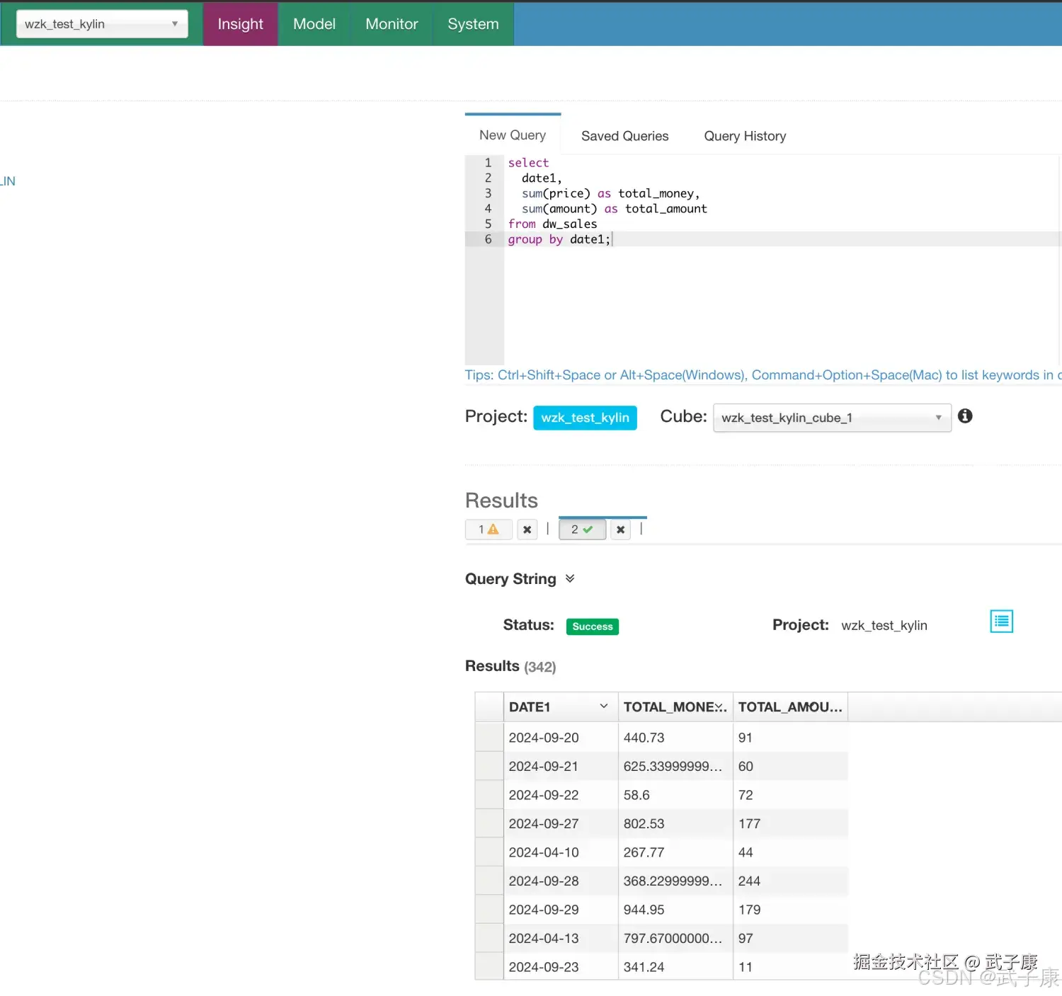 - 场景:以电商销售事实表为例,在 Kylin 上按"日期"维度预计算加速聚合查询。