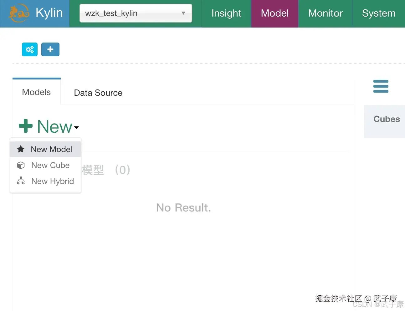 - 数据建模:首先在 Kylin 中创建一个数据模型(Data Model),这个模型定义了事实表和维度表之间的关系,类似于星型或雪花型模式。模型中也定义了需要聚合的度量字段。