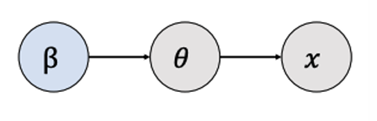 在贝叶斯方法中,参数 θ θ θ不仅影响观测数据 x x x,而且其自身也受到另一个参数集 β β β的影响, β β β定义了 θ θ θ的先验分布。