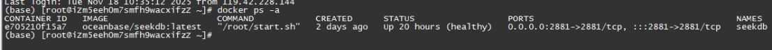 这个机器上已经安装好了seekdb和powermem。seekdb是用docker启动的。里面的database和表都已经初始化好了。