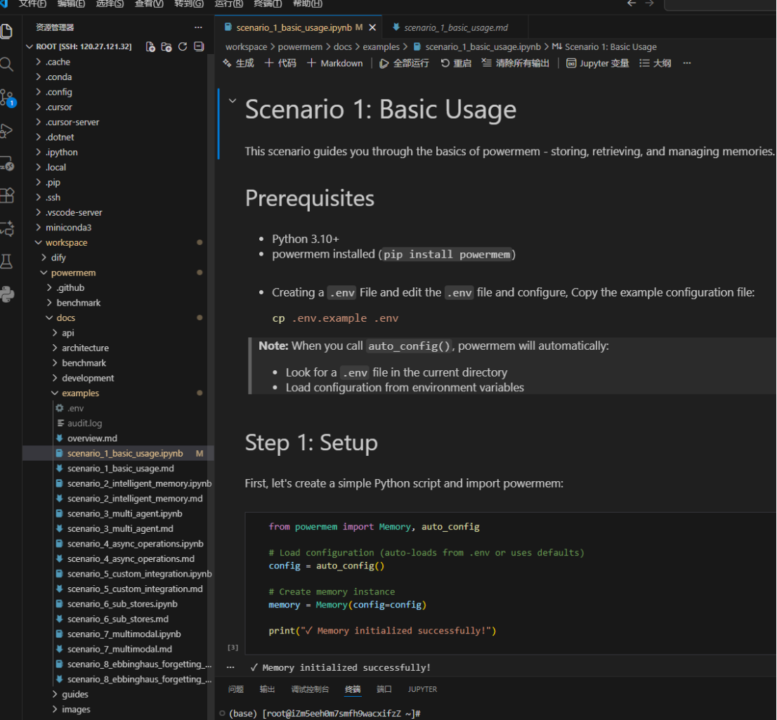 按照我左边的路径进入到workspace/powermem/docs/examples/
