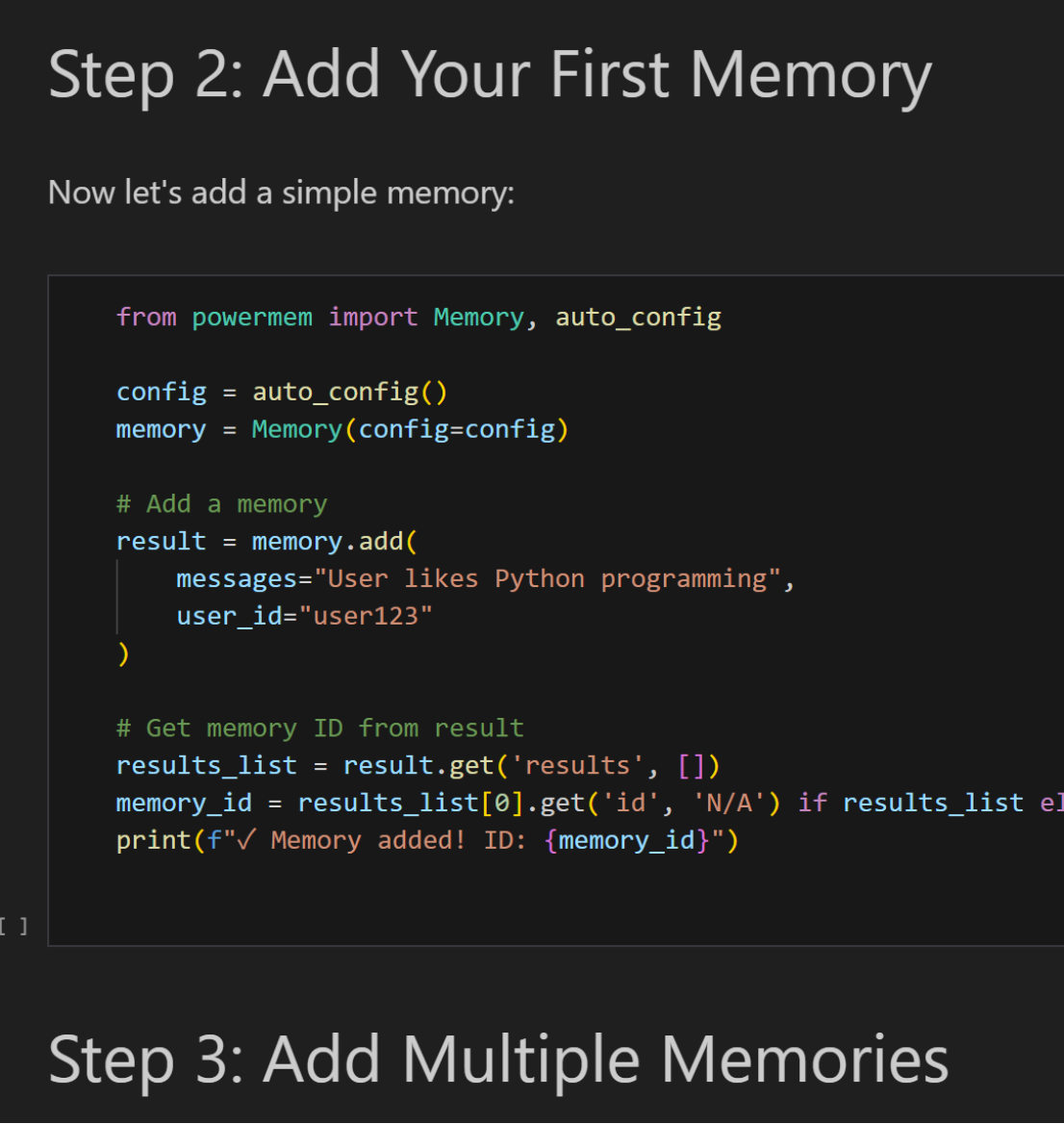 分别是增加一条记忆,增加多条记忆,后面还有修改一条记忆和删除记忆等步骤。