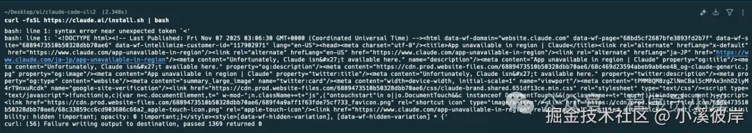 该问题常见于使用官方提供的Shell命令安装Claude,主要原因还是地域限制