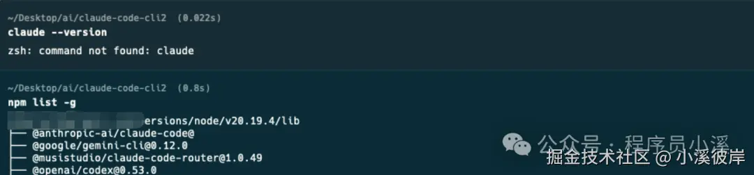 今天准备使用Claude Code CLI时发现Claude Code CLI又出问题不能用了,使用 npm list -g 查看NPM全局安装列表中又是有的,只是此时的CLI看着有些异常没有版本号🤣。这已经不是第一次出现这个问题了,之前就出现过,上次就是各种手动删除后重装才正常的,真是够折腾的。