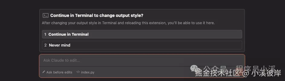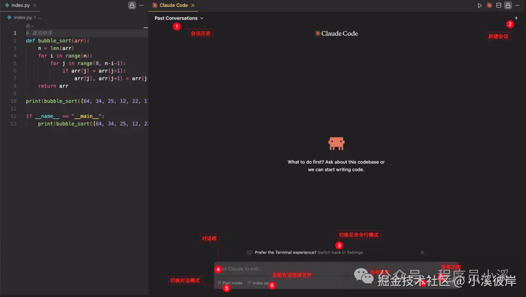 打开Claude Code插件可以看到效果如下,不再是以前黑乎乎的命令后窗口了