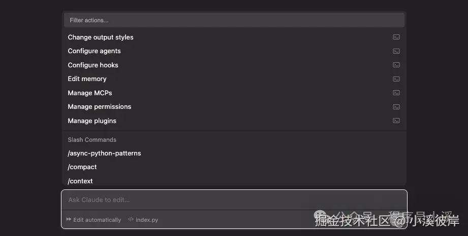 点击【Show Command menu】可以打开Claude Code菜单功能