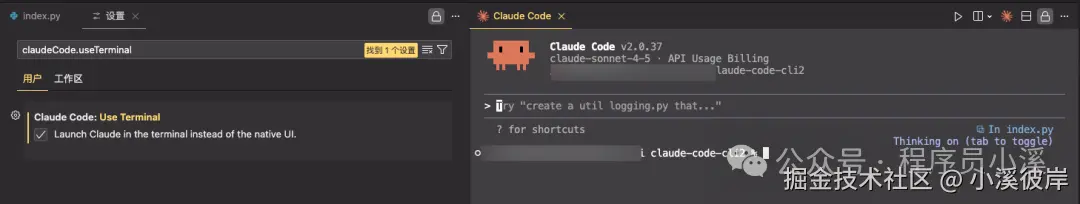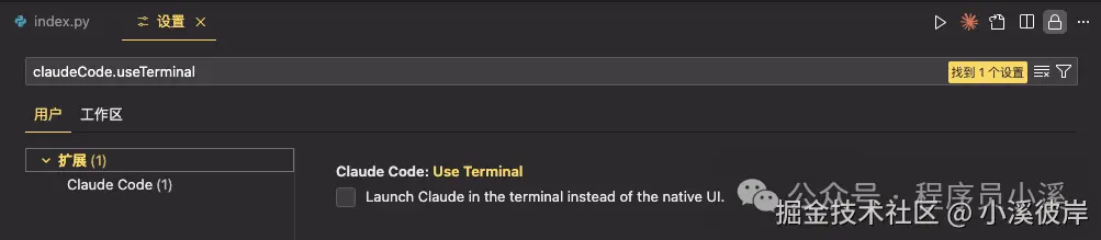 勾选【Launch Claude in the terminal instead of the nativeUi】,重新打开Claude Code插件可以重新切换到命令后终端页面,再次切换到UI交互模式只需重复刚刚的勾选操作即可。
