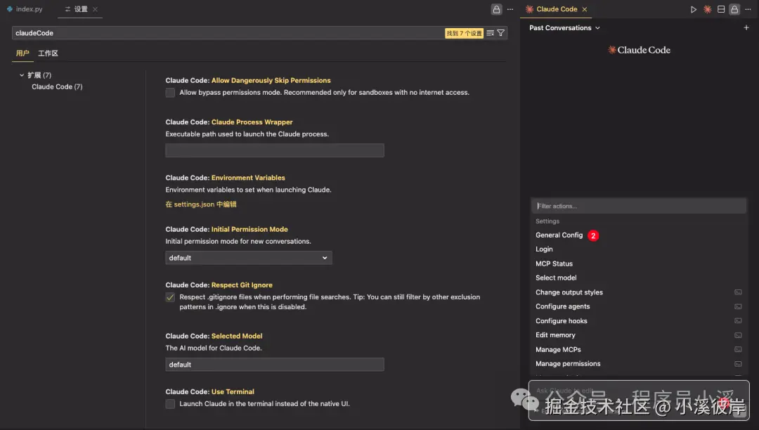 点击【General Config】可以打开Claude Code插件通用设置页面