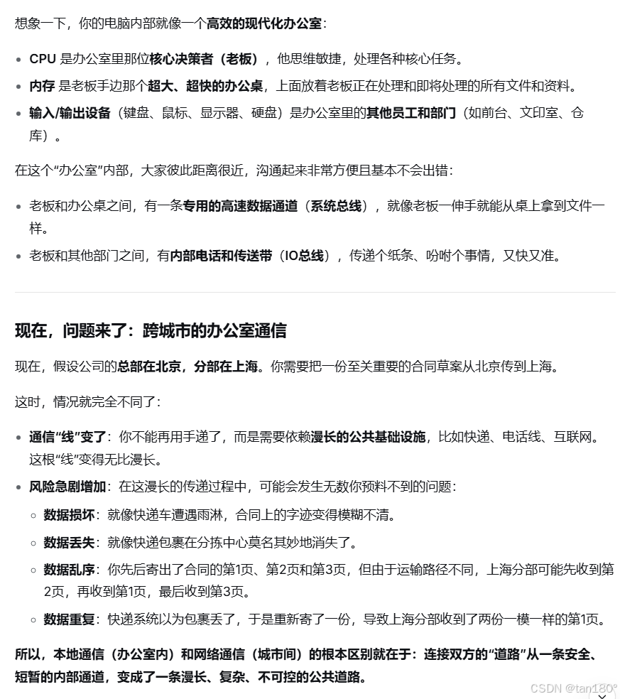 原理是一样的,但是因为一个距离够近,所以就没啥问题,一个距离很长,所以就很容易出问题,就需要引入很多可靠性的机制(确认应答(个人认为理解TCP可靠性的最基础、最重要的概念)、超时重传、连接管理、滑动窗口等),就像你跟她的感情一样~