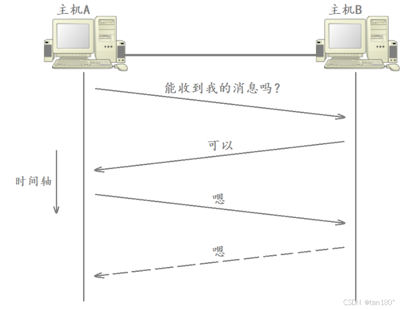 但 TCP 要保证的是双方通信的可靠性,虽然此时 主机A 能够保证自己上一次发送的数据被 主机B 可靠的收到了,但 主机B 也需要保证自己发送给 主机A 的响应数据被 主机A 可靠的收到了。因此 主机A 在收到了 主机B 的响应消息后,还需要对该响应数据进行响应,但此时又需要保证 主机A 发送的响应数据的可靠性...,这样就陷入了一个死循环