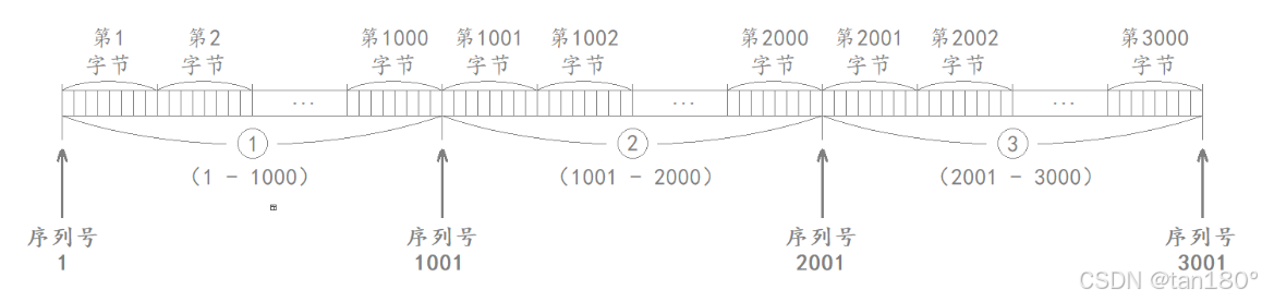 此时这三个 TCP 报文当中的 32位序号 填的就是发送数据中首个字节的序列号,因此分别填的是 1、1001和2001