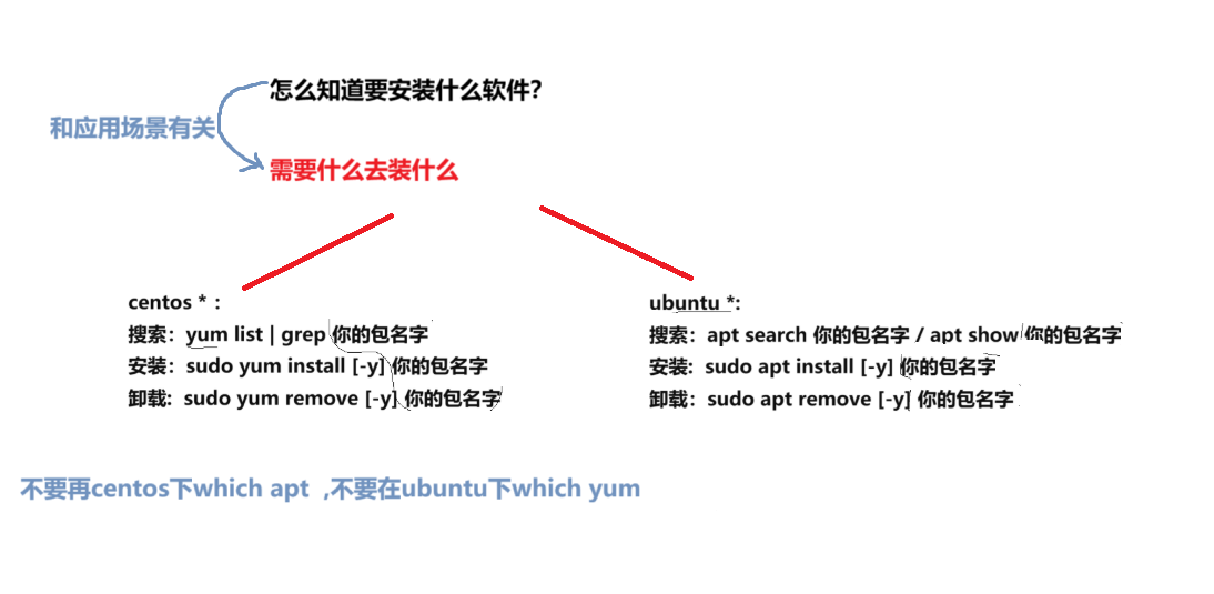• 安装软件时由于需要向系统目录中写入内容, 一般需要 sudo 或者切到 root 账户下才能完成. • yum/apt安装软件只能一个装完了再装另一个. 正在yum/apt安装一个软件的过程中, 如果再尝试用 yum/apt安装另外一个软件, yum/apt会报错.