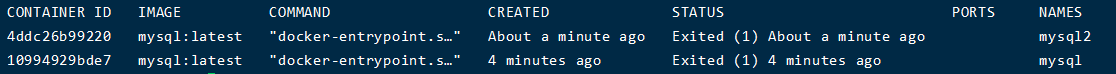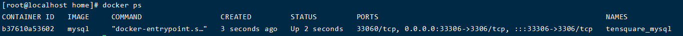 docker run -di --name=mysql -p 3306:3306 -e MYSQL_ROOT_PASSWORD=123456 mysql