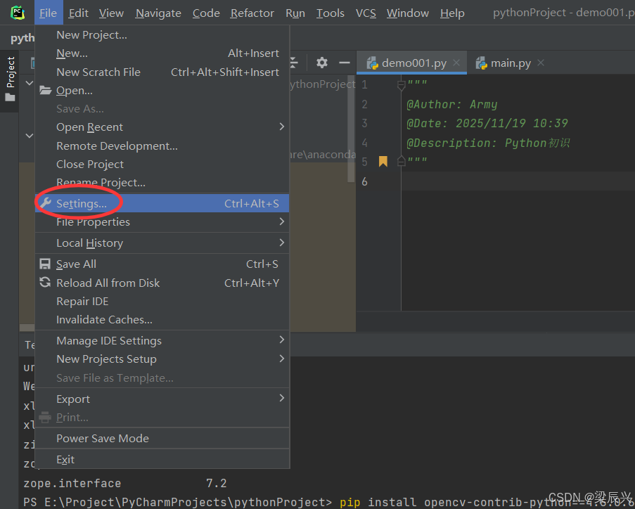 PyCharm项目配置中安装