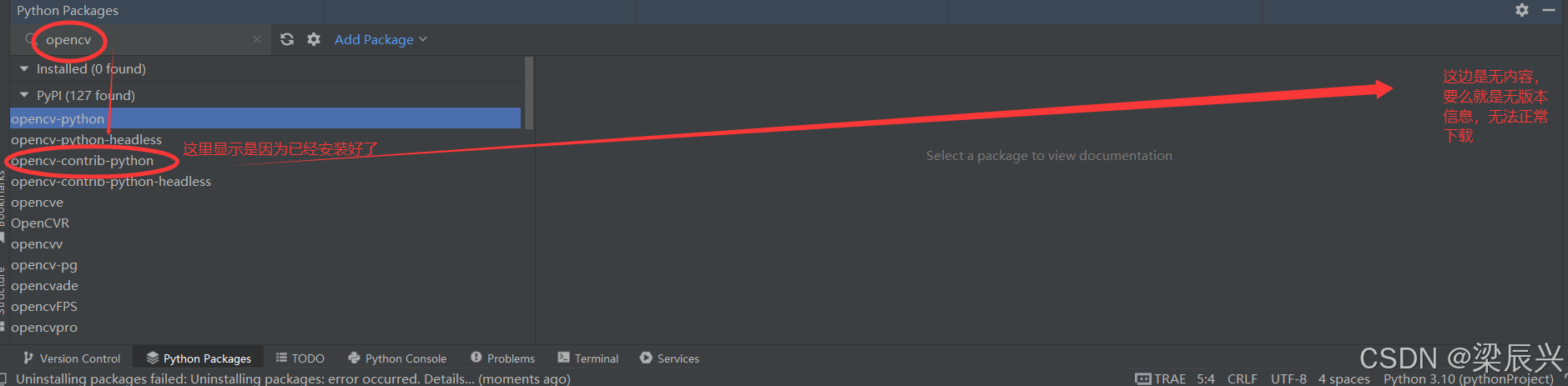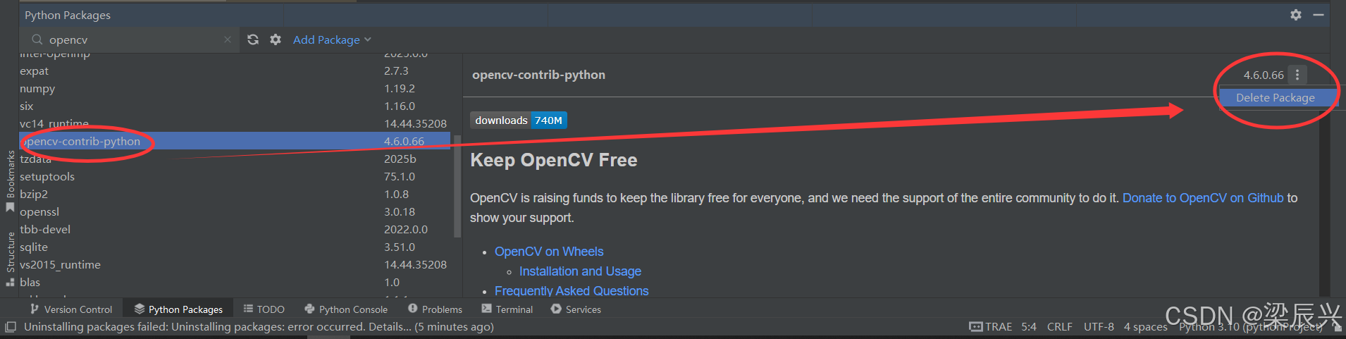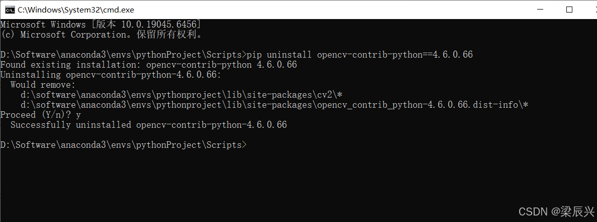 3,这里先卸载掉已经安装好的opencv-contrib-python库。