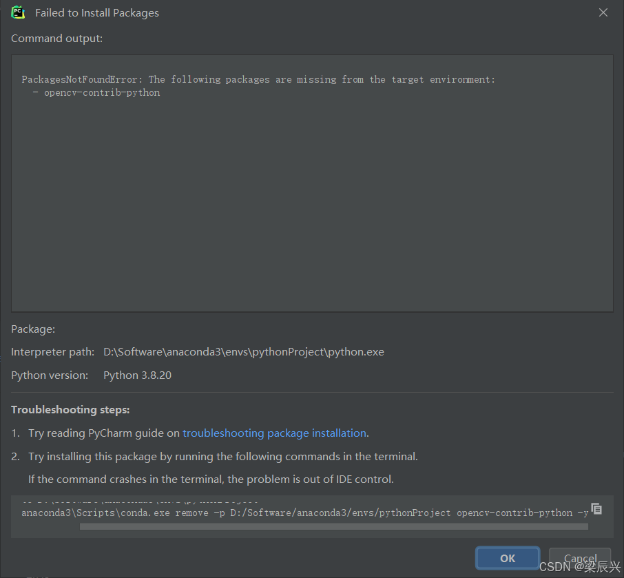 使用PyCharm创建一个使用Conda虚拟环境的项目,在下载新库(包)时,无法正常下载到该项目中的虚拟环境中,PyCharm终端中执行命令下载到全局Python环境中,而不是该项目环境中;其他界面下载,搜索不到或直接报错。