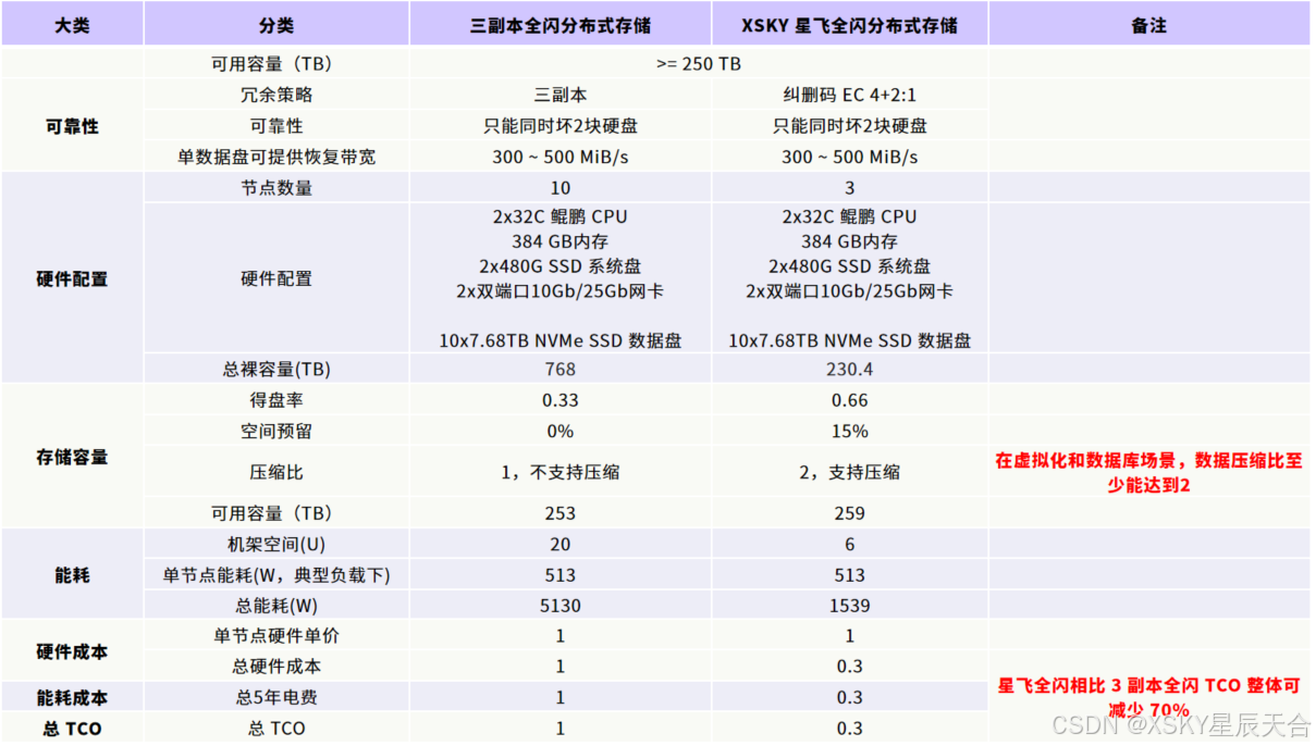 在实际场景中,原本需要 10 节点实现的可用容量,采用星飞全闪后仅需 3 台节点即可达成,硬件成本和能耗成本降低均减少70%。