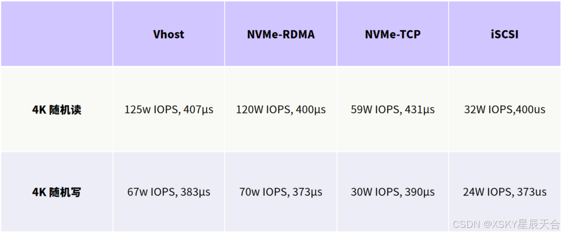 - 单卷能直接用满 25Gb 网络:在 4KB 随机读这个用来衡量数据库、虚拟化等关键业务性能的重要指标上,星飞存储的实际测试数据显示,在 vhost 和 nvme-rdma 协议下都能轻松用满网络。