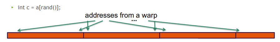 5.一个warp 里的线程,随机跨段访问, 带宽利用率 128 / (N*128) (3.125% worst case N=32)。 这算是最坏的访问模式了, 注意一下这种方式可能会牺牲掉一些性能。
