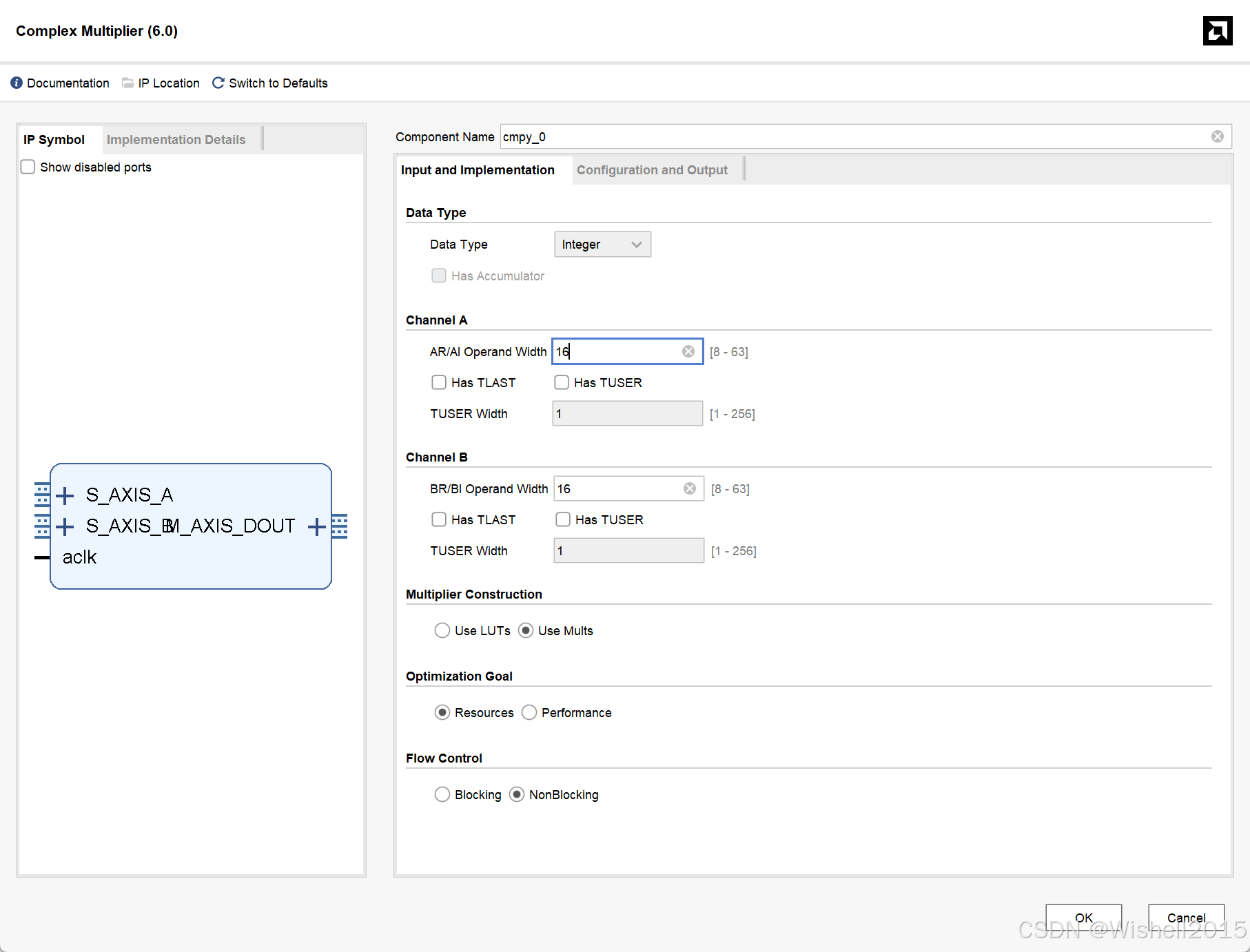 通道配置(Channel A/B): AR/AI Operand Width(通道实部/虚部位宽),范围:8~63位。