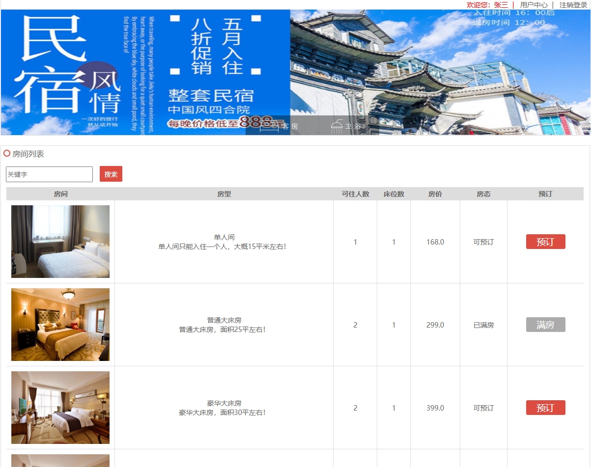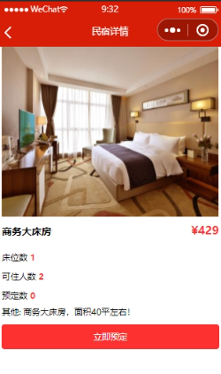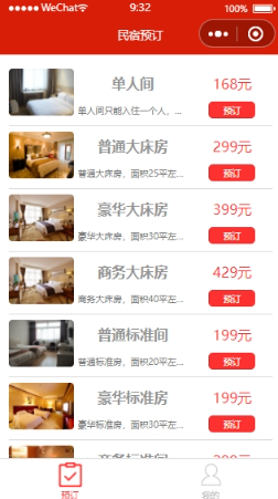 (3)用户预订功能,包括民宿房型选择,预订日期,人数等;