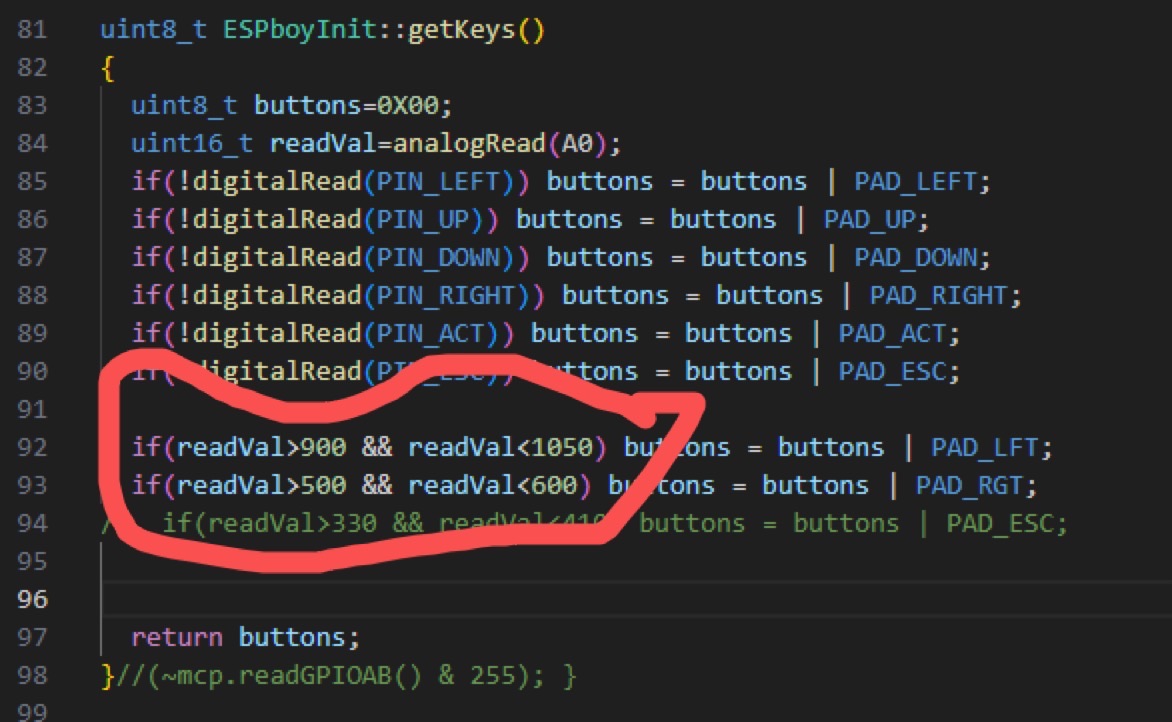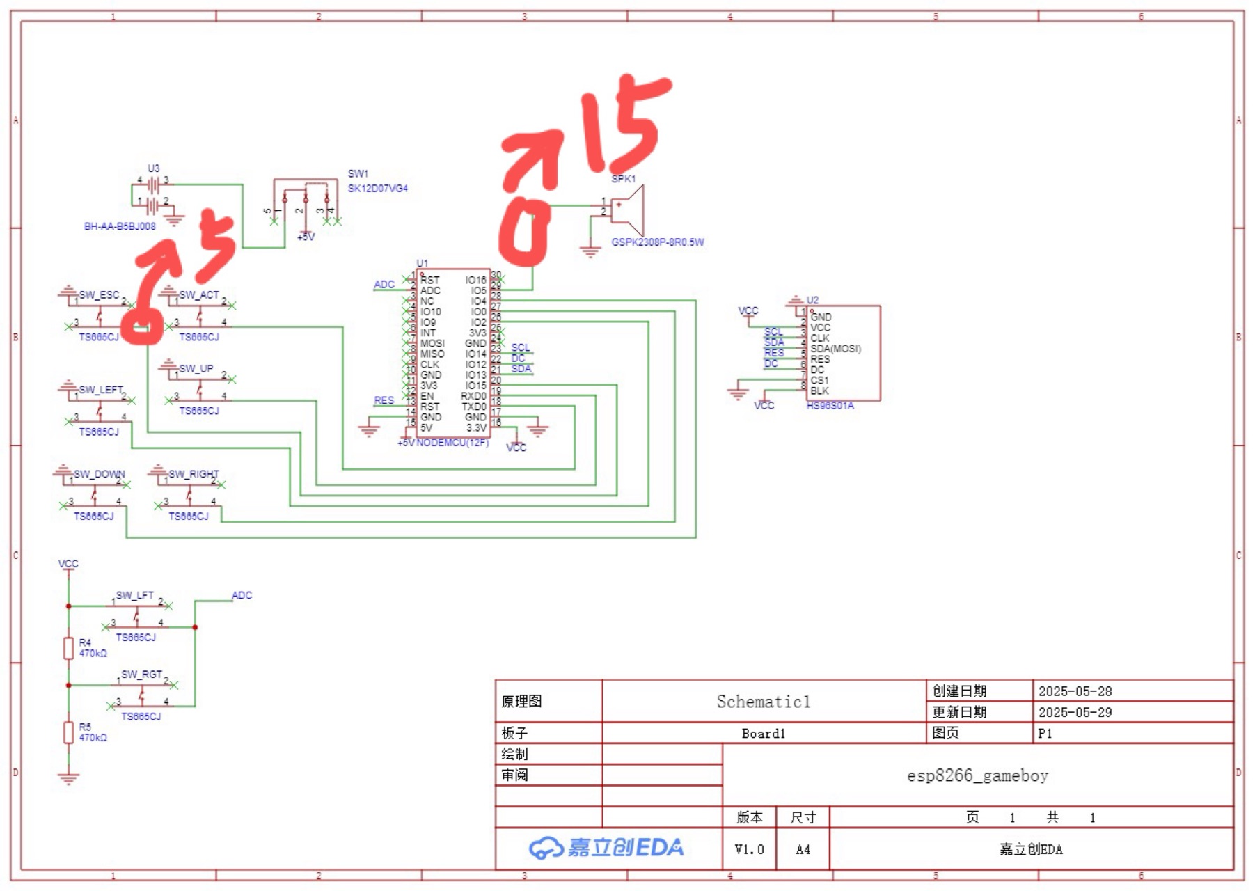 最后就是,我们虽然用的是彩屏,但gameboy实际上是单色的游戏机,我们只用了彩屏的大小,颜色的话就是黑白和液晶绿最顺眼。A0接口的两个按键用的电阻我换成了10k
