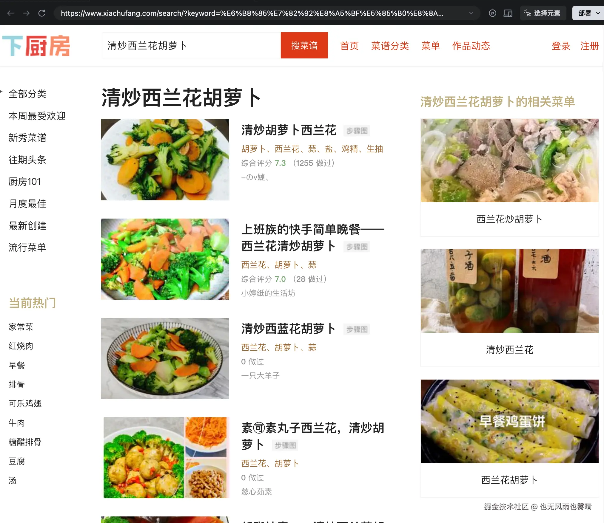 点击 "下厨房教程",会直接跳转到对应的图文做菜步骤网站: